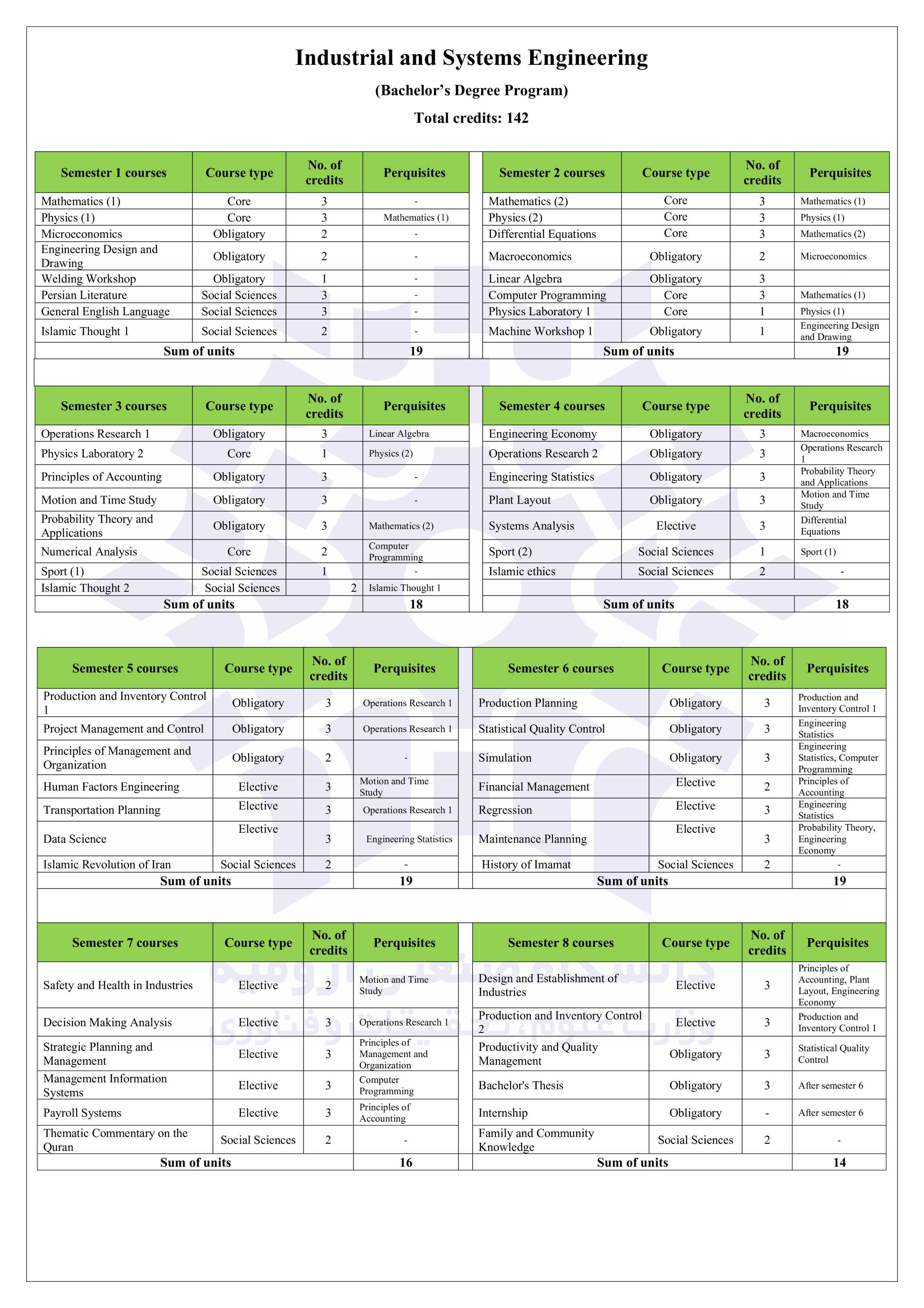 In addition to the general university academic regulations, undergraduate students in the Industrial Engineering program must adhere to the following specific rules: